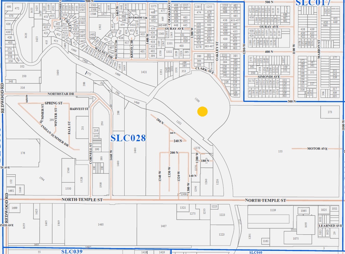 We are the precinct encompassing the state fairgrounds. The area includes River's Bend Senior Center and the Northwest Recreation Center, which lie west and northwest of the fairgrounds. The precinct is bounded on the west by the east side of Redwood Road, on the north by the south side of 500 N, on the east by the west side of 1200W, then the state fairgrounds, which includes the Fairpark DMV office. Geographically the precinct extends into an industrial area south of North Temple, but for practical purposes the residential boundary is along North Temple, including the KOA complex. The precinct area includes a stretch of Jordan River Trail, Constitution Park and Cottonwood Dog Park.